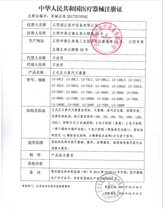 濱江醫(yī)療LS-35HD立式壓力蒸汽滅菌器