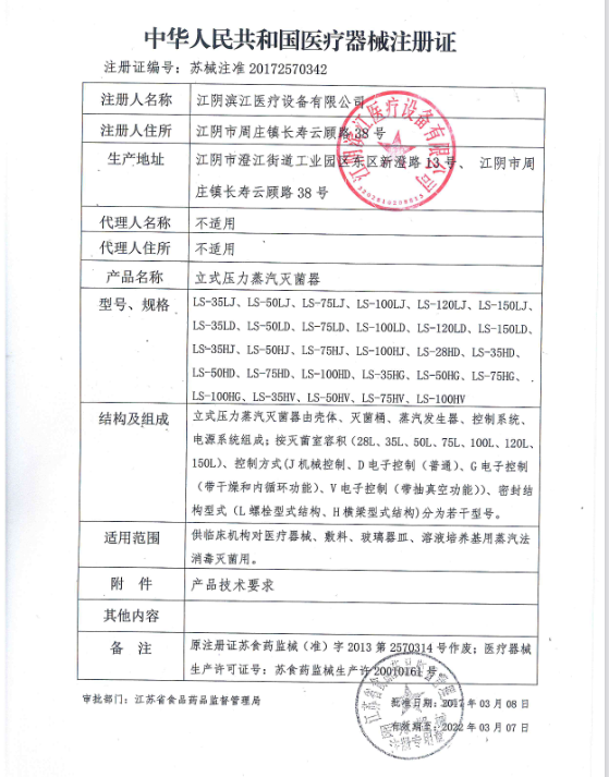 濱江醫(yī)療LS-150LD立式壓力蒸汽滅菌器